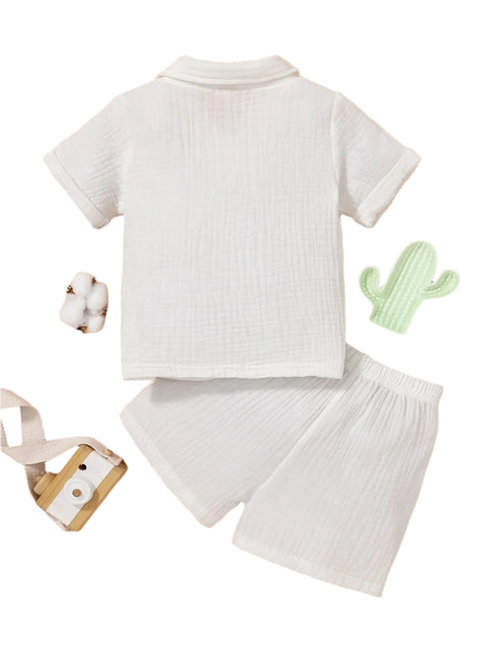 Vit Sommaroutfit i Bomull – Skjorta & Shorts för Barn