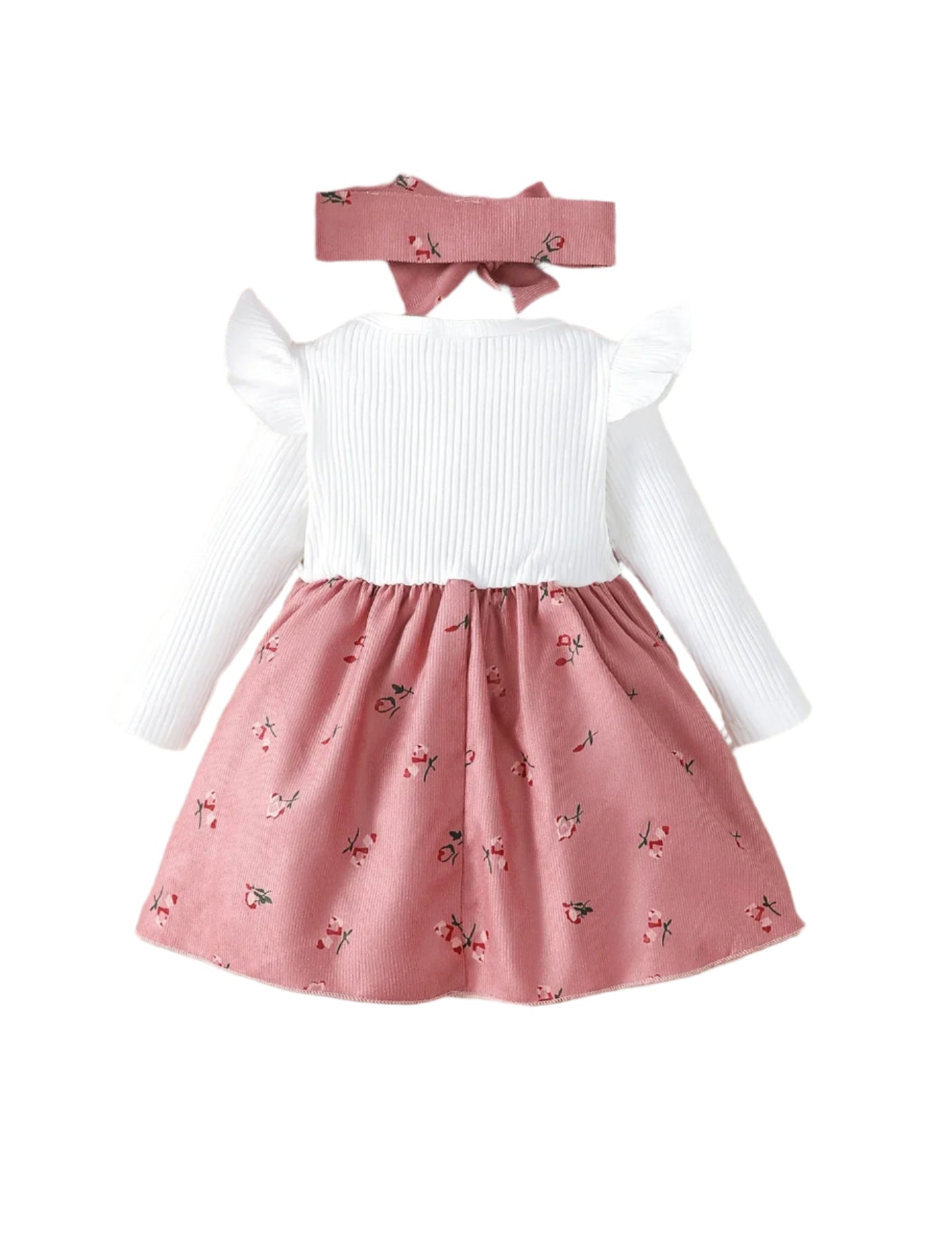 2-delars Klänning för Babyflicka – Prinsessstil med Rosett & Hårband