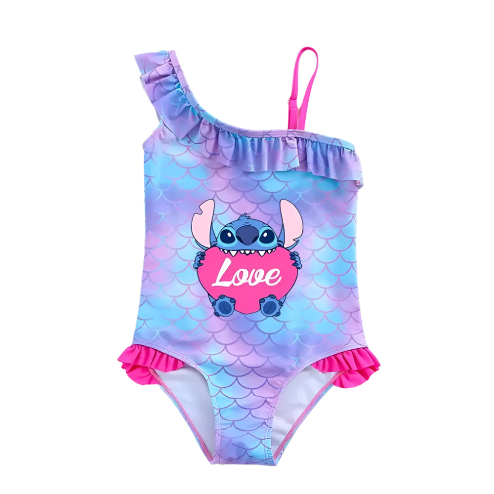 Förvandla badstunden till ett magiskt äventyr med denna Lilo & Stitch-inspirerade sjöjungfru-baddräkt för små flickor! Perfekt för stranden, poolen eller vattenlek i trädgården – den här enheltsbaddräkten med fiskfjällsmönster är både söt och praktisk.