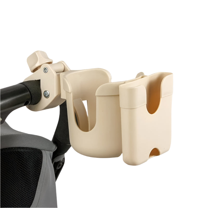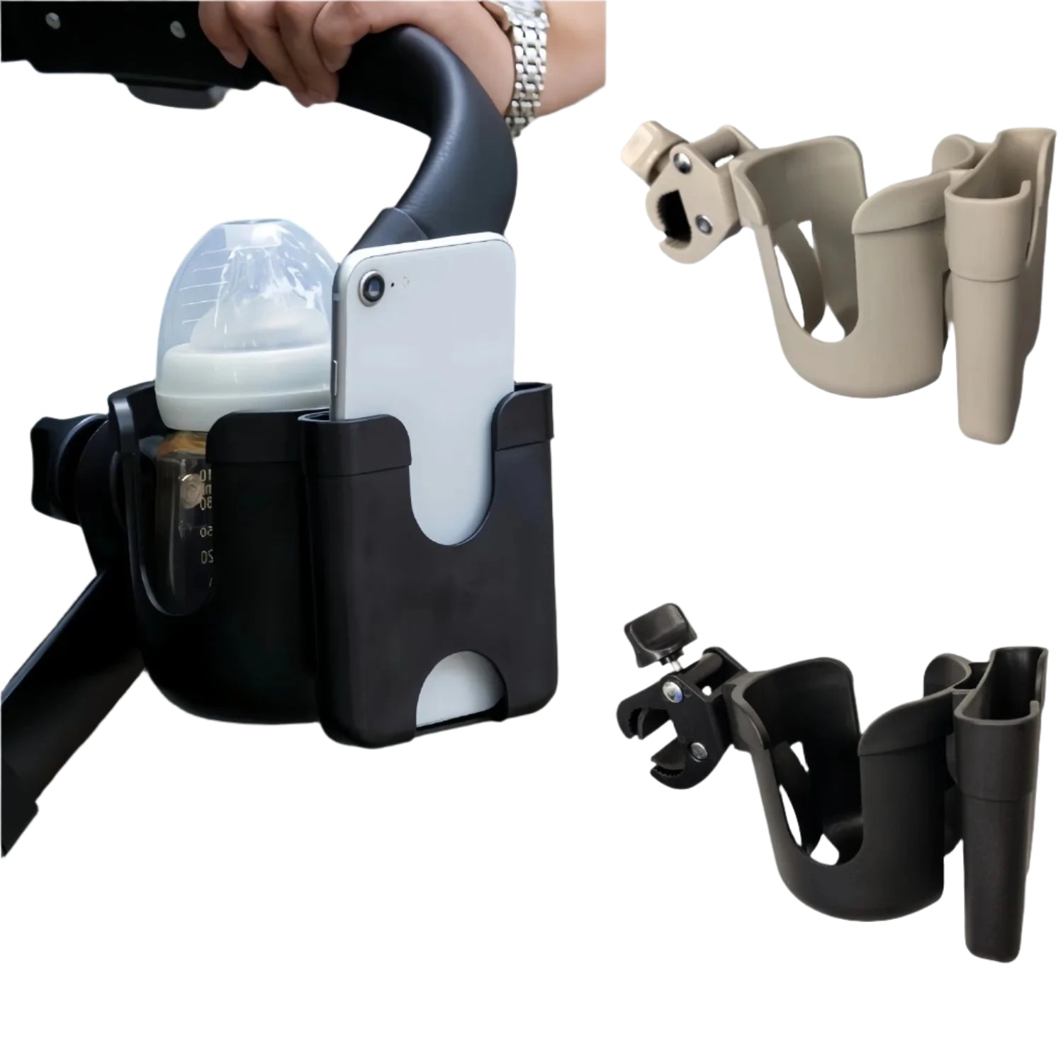 Gör dina promenader smidigare med denna smarta mugghållare som även rymmer din mobiltelefon! Perfekt för kaffe, vattenflaska, nappflaska eller snacks – samtidigt som du har mobilen inom räckhåll.