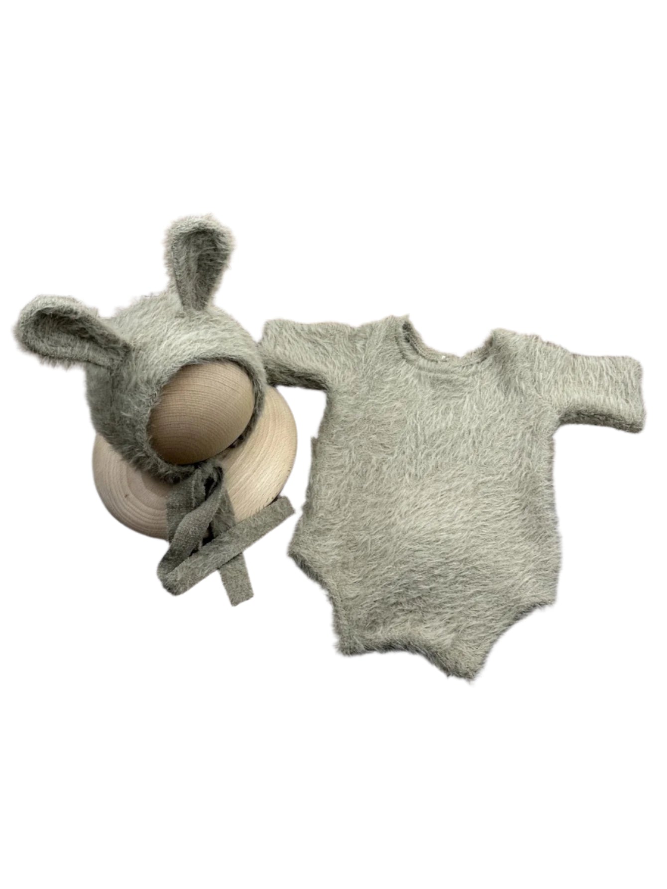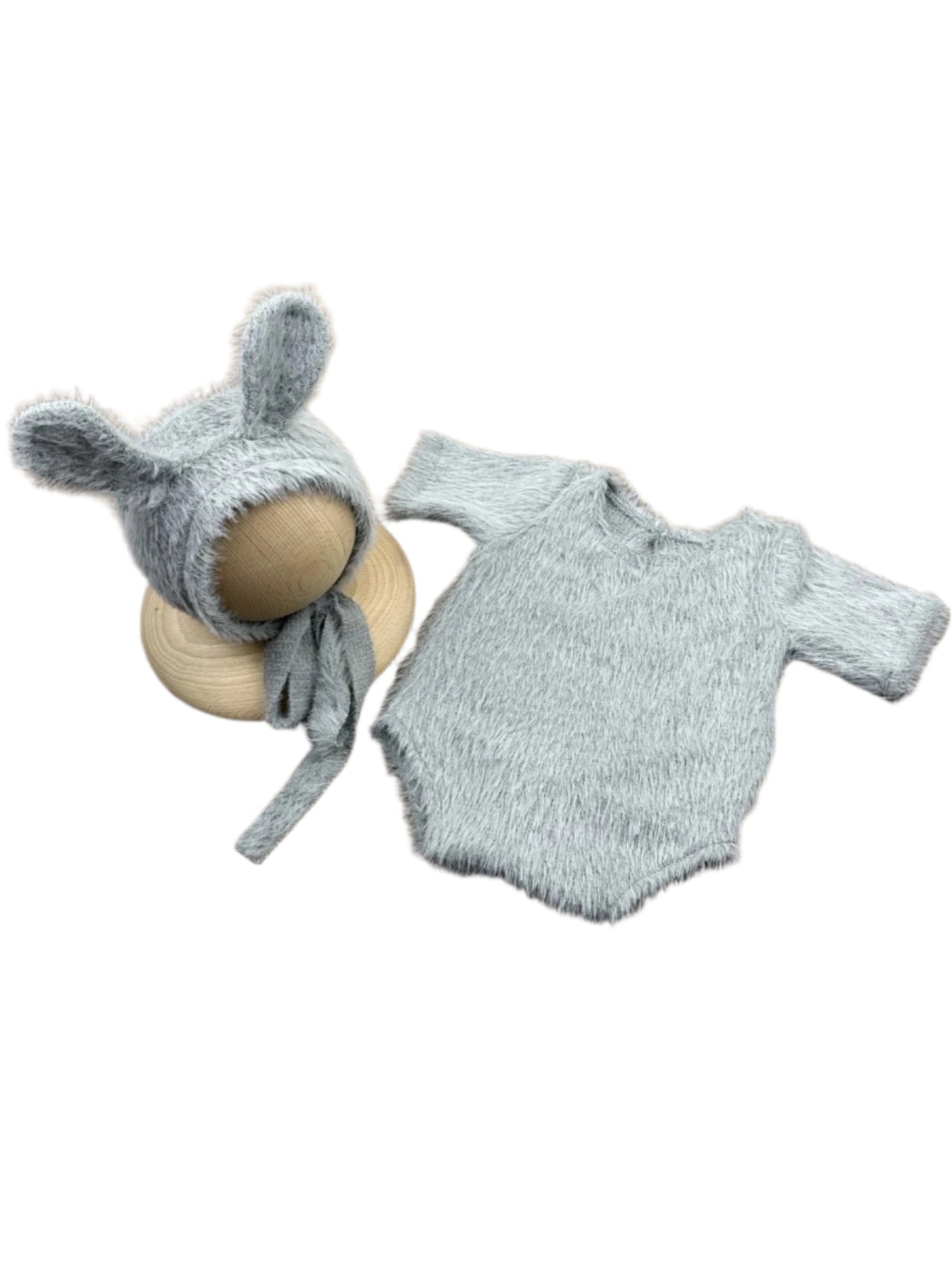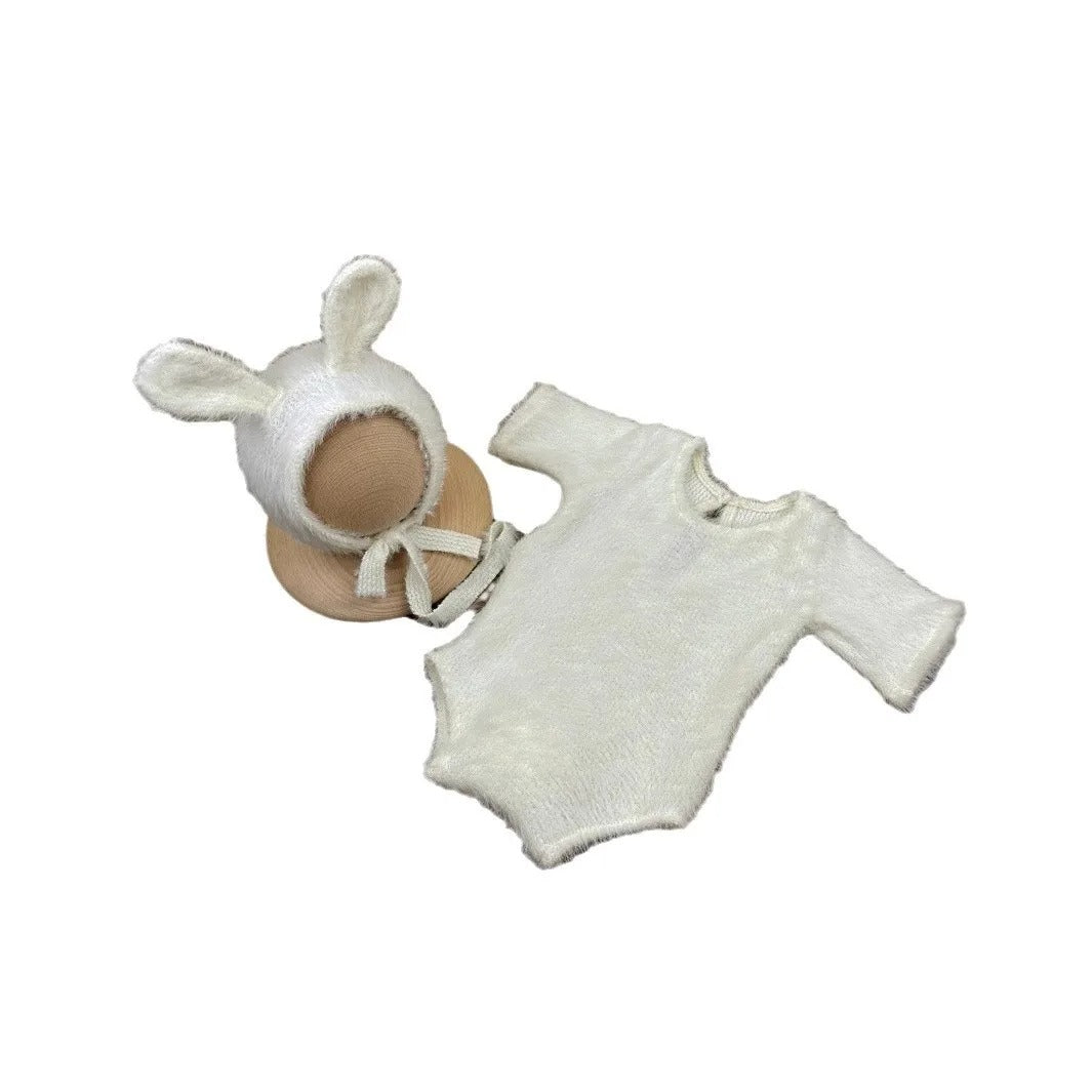 Nyfödd Kaninoutfit – Stickad Fotodräkt med Kanindocka