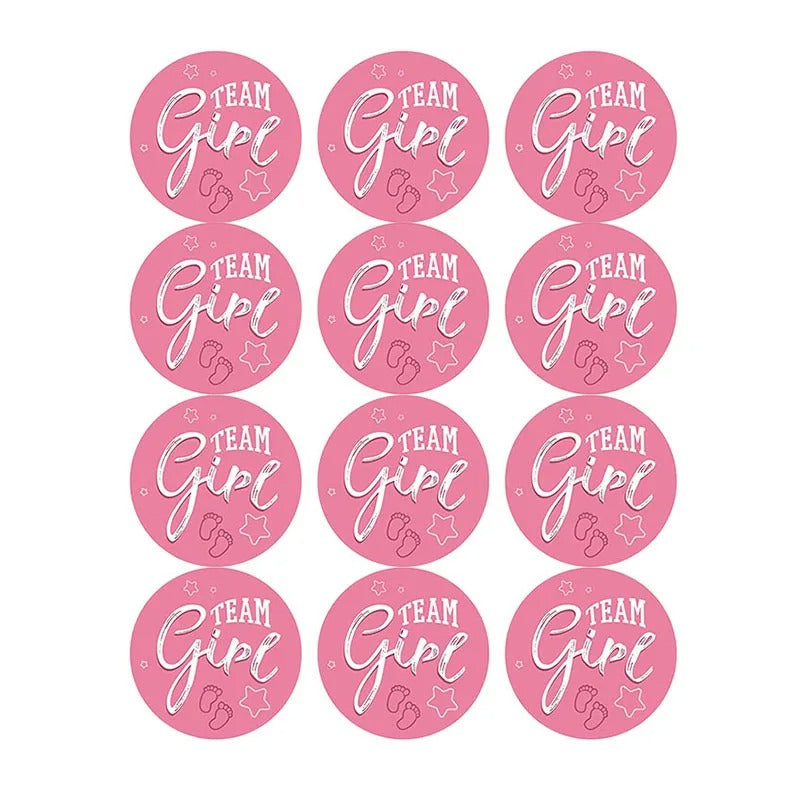 Låt gästerna visa vilket team de tillhör! Dessa färgglada klistermärken är perfekta för att dekorera glas, presentpåsar, gästkläder eller boxar under babyshower eller könsavslöjande fest.